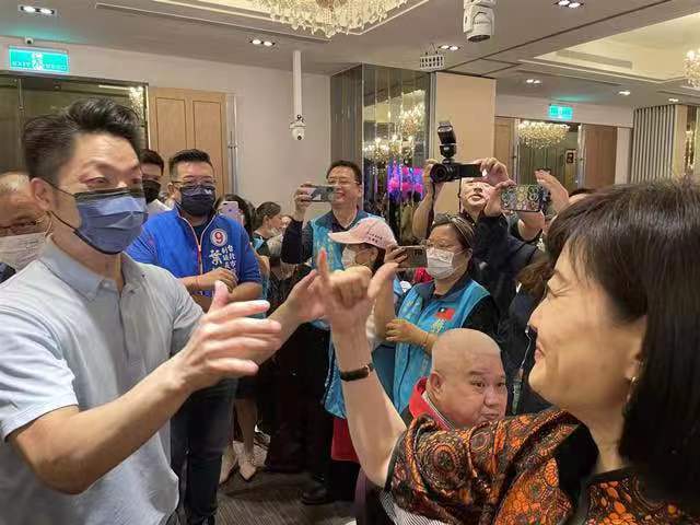 本届大陈乡情文化节晚会,10月22日假座钜星汇国际广场举行,在喧天价响鼓声,伴着舞龙舞狮阵中,国民党提名台北市长候选人、抽签6号蒋万安,被支持者簇拥下到场,经过1号贵宾桌前,巧遇旧识朱茗玥老师,彼此比出象征6的勾手,再上台致词并接受赠礼,接着由朱老师登台献唱国剧,从唱词里听出寓意,披荆斩棘保万安,借此隐喻六六大顺,冻蒜喧腾入云端!