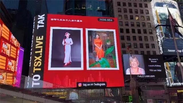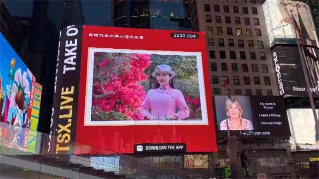 美国纽约时间6月26日、6月27日下午8点半,余淑琴作为《榜样的力量 • 新时代杰出华人海外代表》再次荣登纽约时代广场大屏幕,连续两天两次展播。