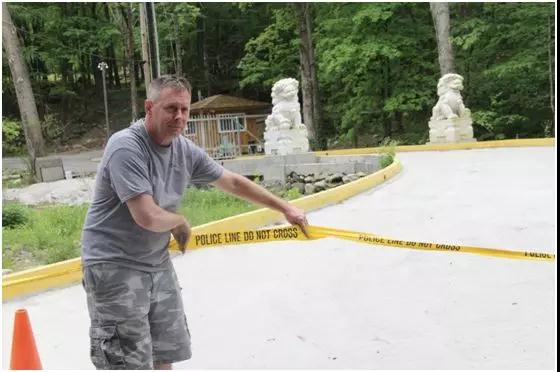 (“龙泉寺佛学公司”周围被拉起警戒线。图源:recordonline)