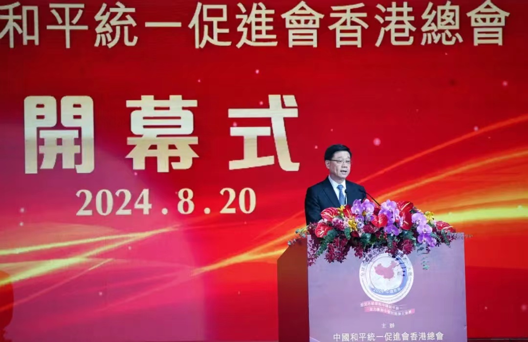 香港特别行政区行政长官李家超致辞时表示,“一国两制”给了香港不胜枚举的制度优势,他从五个方面进行分享。李家超指出,香港回归以来的成功,充分展示了“一国两制”是解决历史遗留类似问题、促进世界和平发展的好制度。他呼吁香港侨界领袖和全球华侨华人,多在国际社会说好中国和平统一好故事、说好“一国两制”实践的好故事,继续为中国和平统一大业作出贡献。