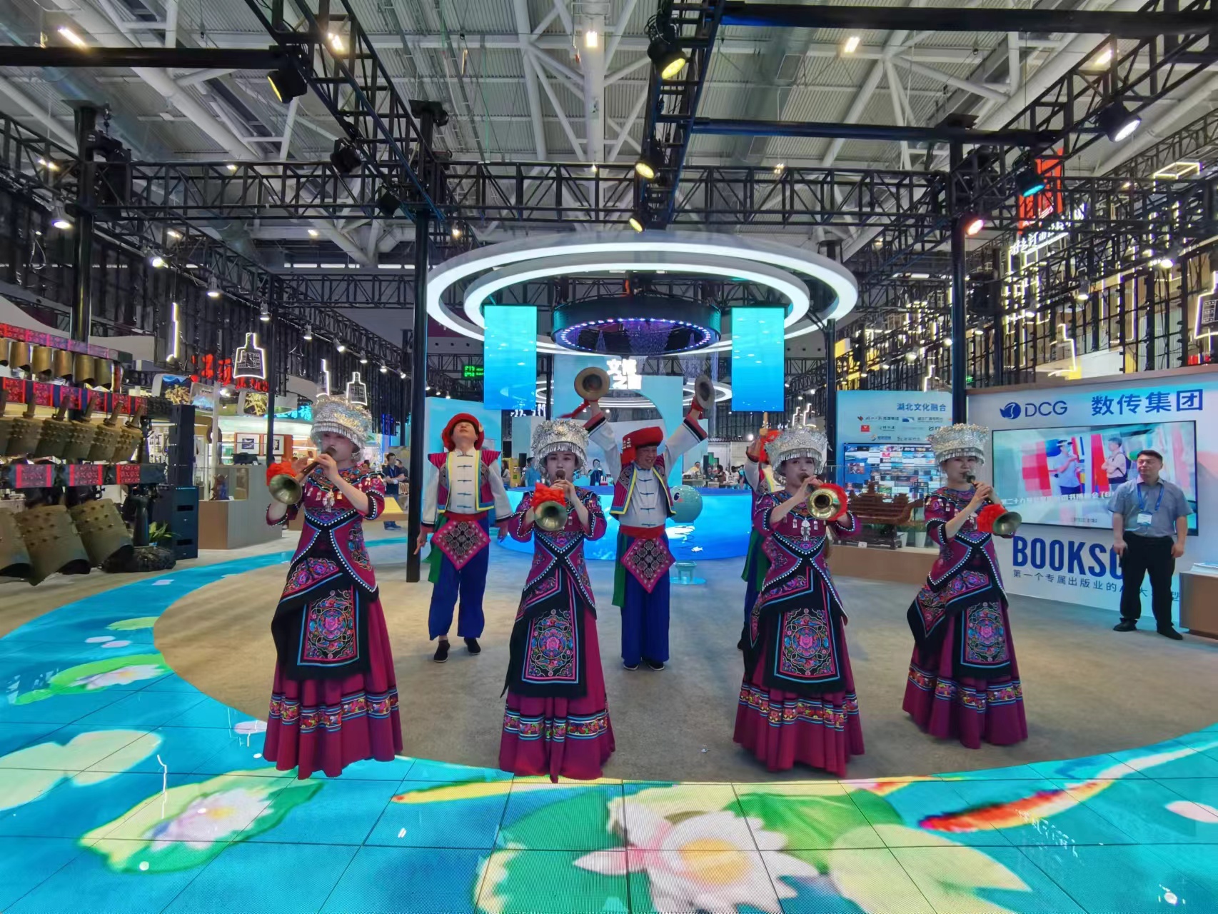 湖北从长江走来。贯彻落实习近平文化思想,保护、传承、弘扬好长江文化是湖北新时代的文化使命。湖北馆以“流淌长江文化,书写荆楚变迁”为设计理念,将展演销结为一体,生动展现出荆楚风、长江潮、文化韵、科技感的新时代湖北文化特色。展会现场,汇聚5000多件展品的湖北馆,从文化与科技融合、文博之窗、文化创意、荆楚风物、人文生活展示等5个方面,集中展陈优势荆楚文化创造性转化、创新性发展的最新成果,生动展示中国式现代化的湖北实践,吸引了大批嘉宾、客商和观众观看。