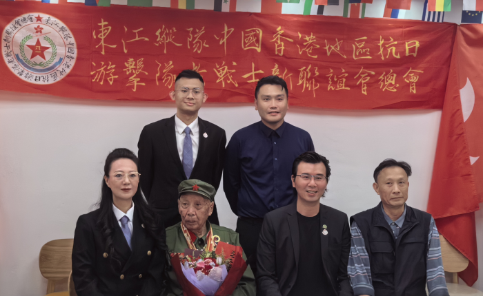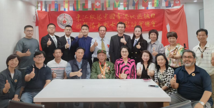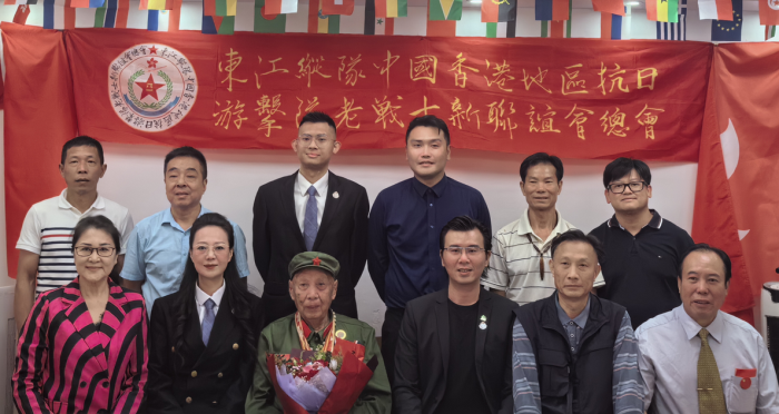 由东江纵队中国香港地区抗日游击队老战士新联谊会主办的“抗战胜利80周年老战士座谈会”在屯门新合里美基工业大厦隆重举行。多名抗战老兵后代、爱国团体代表及青年代表齐聚一堂,共同追忆烽火岁月,传承抗战精神。