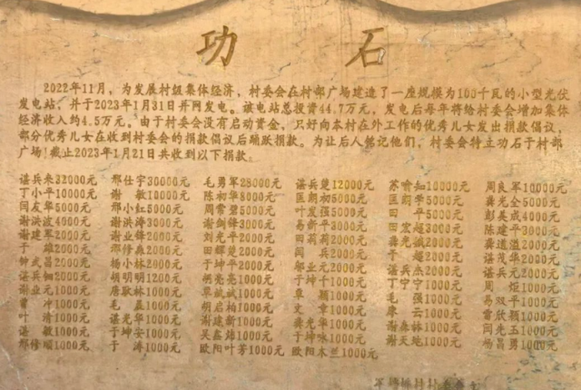 在振兴经济、振兴乡村的今天,人才就是有力的后盾。壁如;2022年11月,军垱村为了发展地方经济,村委会在村部广场建造一座规模为100千瓦的小型光伏发电站,并于2023年并网发电。电站总投资44,9万元,发电后每年将给村委会增加集体经济收入约4,5万元。由于村里没有资金启动,只好向本村在外的优秀儿女发出捐款倡议,在外的工作人员看到倡议后踊跃捐款。如谌兵来就捐款32000元,邢仕宇30000元等5人捐款万元以上。70多人捐款,最低的捐款都是1000元以上。此举村里专门竖立了一块“功石”碑。支村两委体会到家乡有人、家乡出能人,故土就是他们的根,我们就应该为在外的游子管好这片土地,让他们在外大显身手。军垱村出去的学子高至厅级,涉及军事、科技、教育各个领域。