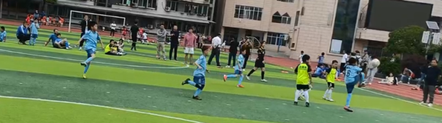 各队比赛时双方各有五名球员上场,每场30分钟,上午两场,下午两场连续四场的比赛,藏龙第三小学足球队经过激烈的角逐,分别以10:0胜海淀外国语小学,6:5胜五里界小学,4:1胜明熙小学,1:1打平后以点球胜庙山第二小学,最终以全胜的战绩获取了该小组第一名。