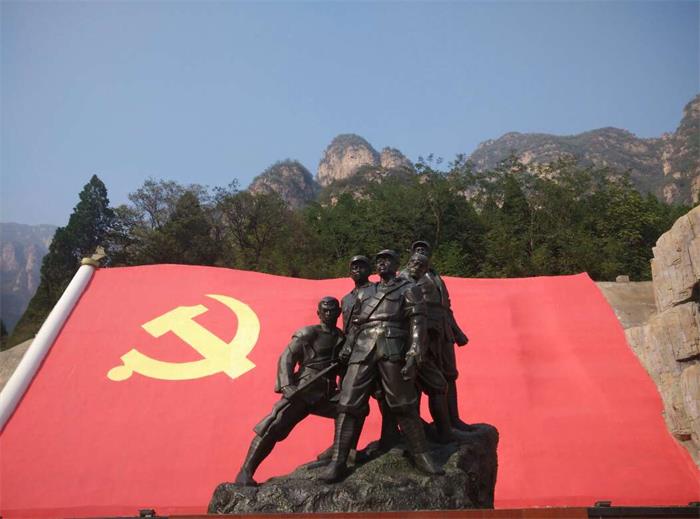 早上八点,大家整装待发,驾车奔赴狼牙山,伴随着秋日爽朗的晨曦,驱车近一个小时,笔者一行来到红色景区狼牙山。山下车流涌动,山上游人如织,笔者一行排队将近一个半小时后,终于坐上了上山的索道,十几分钟后到达狼牙山棋盘坨山峰下,顺着陡峭的人工栈道,奋力攀爬一个多小时,终于到达“狼牙山五勇士纪念碑”所在地——狼牙山最高峰棋盘坨。登高望远,巍巍太行,壮丽狼牙尽收眼底,山上植被浓密,五色绚烂;山间峡谷纵横,盆地星罗;山势或逶迤相连,绵延不绝,或鹤然独立,直插云霄;山顶处“五勇士纪念碑”巍然耸立,“五勇士纪念碑”六个大字苍劲有力,彰显出五勇士视死如归的民族气节和为争取民族独立血洒疆场的恢弘气势。