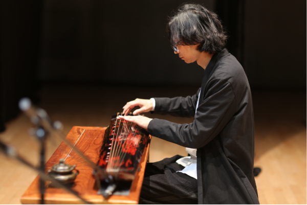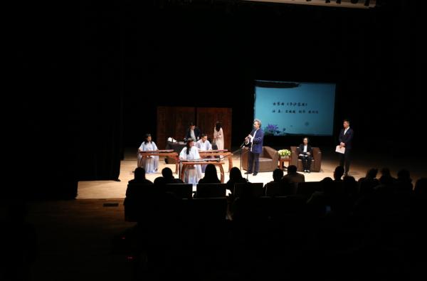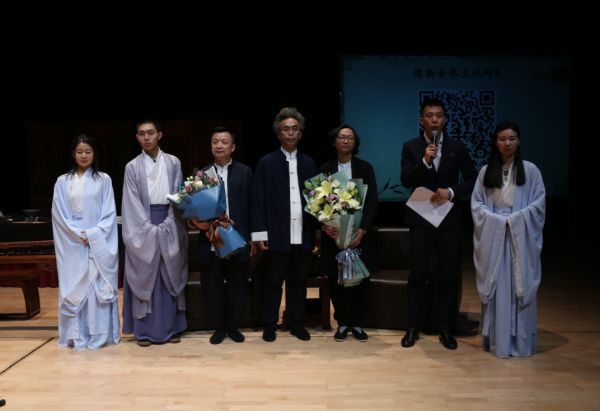 活动由一曲《卧龙吟》拉开序幕,张金桥先生给观众分享了古琴的历史、古琴与古筝的区别,并倾情演奏了古琴曲《流水》《酒狂》;田泉先生与观众分享了减字谱的由来和识别等,与张金桥先生共同演奏了《良宵》等古琴的经典曲目;黑龙江著名书法家连战与两位大师同台创作,重现了一场古代文人雅士聚会时“琴书雅韵”的场面,让观众耳目一新,意犹未尽。现场座无虚席,精彩纷呈,掌声此起彼伏,古琴的松沉旷远,倾泻幽情,感风心志,让人雪躁静心,观众静静欣赏着悠远的天籁之音,听着两位大师精彩的解读,了解了中国古琴的魅力所在,加深了对传统古琴文化的理解、激发了对传统文化的热爱。两位大师也会参加12月12日全国广陵琴派名家的演出,届时与全国的古琴大家们一起切磋,带观众一起领略古琴的魅力。