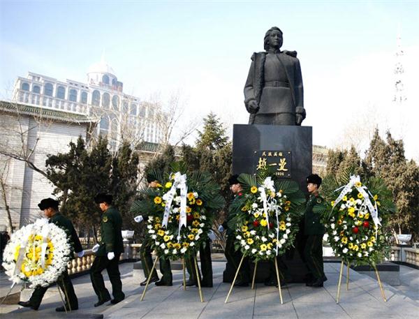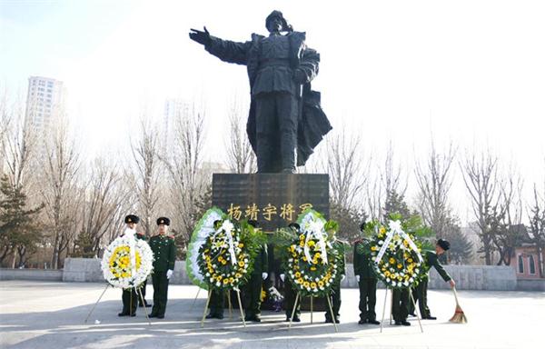 敬献花篮的单位有:凤凰新闻社黑龙江分社、驻哈某部官兵、清河重点国有林管理局和在哈的东北抗联后代。