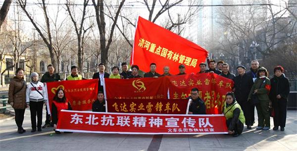 为了响应中国民政部开展“铭记·2018清明祭英烈”主题宣传教育活动,缅怀杨靖宇烈士、赵尚志烈士和赵一曼烈士为代表的东北抗联英烈,由凤凰新闻社黑龙江分社倡导,东北烈士纪念馆、驻哈某部官兵、黑龙江省经济开发建设促进会、清河重点国有林管理局、全国道德主题教育委员会、黑龙江中俄生态环境科学研究院、哈尔滨烈士陵园管理处、哈尔滨市志愿者王春艳分团、哈尔滨市来顺公益服务中心、道外区火车头办事处、飞达实业三公司雷锋车队、黑龙江车友会联盟和在哈部分东北抗联后代代表等单位和团体参与协助(排名不分前后),于2018年3月25日,前往哈尔滨市区的杨靖宇烈士、赵一曼烈士和赵尚志烈士公园参加祭扫活动。