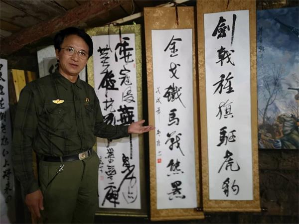 田长友先生在现场介绍书法家都猛先生的抗日书法作品