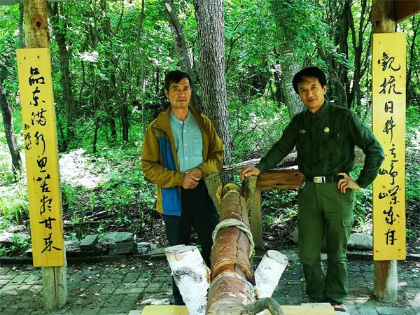 汪清县博物馆馆长、收藏家刘德武,带领施工工人在竖牌、刻碑工作现场辛勤劳动