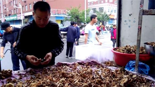 大兴沟镇采蘑菇的李先生说,他们3人他们早上六点起走的,开车到沟里采了十个小时,下午3点多回来。十个小时,一个对点,他们采的榛蘑预计能卖五百多元。为了便于贮存,人们把这些绿色无污染的蘑菇洗净冷冻上,于是人们餐桌上也多了一道东北名菜……小鸡炖蘑菇。