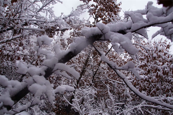 冰雪覆盖下的红叶
