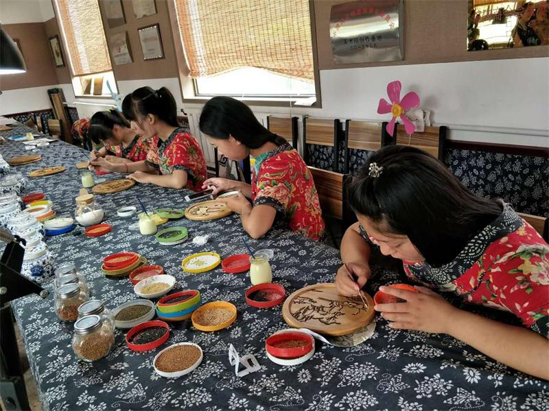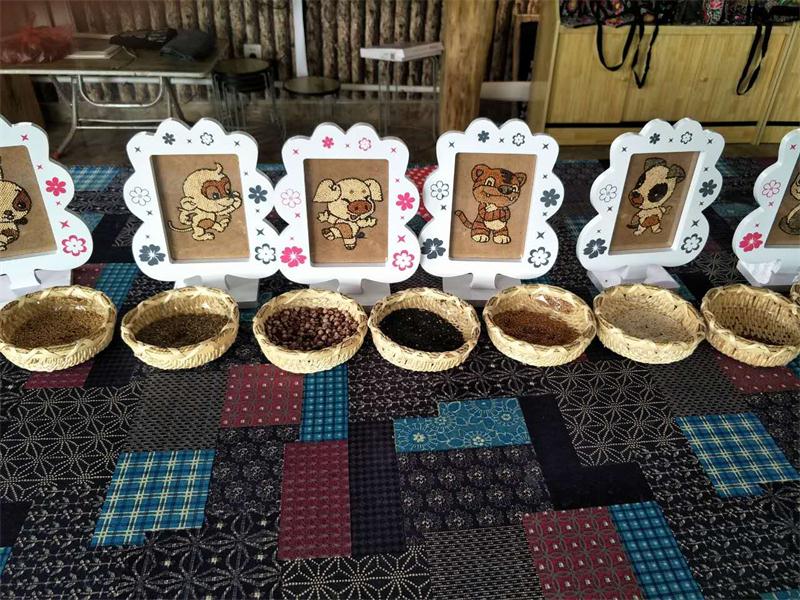 记者信步推门来到了另外一家名叫“献巧粮画工作室”的院落,主人师献巧热情地接待了记者,并讲述了她自己粮画工作室的运行状况。她满意地对记者说:“我这间工作室虽然很小,但也安排了4个人就业,一年的收入不菲。我们创作的粮画,质量和艺术水平很高,曾经受到全国政协委员李玉玲的高度赞赏!”
