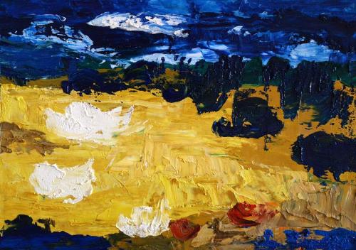 他的油画《月亮》《蓝夜》《秋野》,摄影《索菲亚的窗子》《梦幻世界》《构成》等,从作品构图、选择角度和整体感受给人的是他在美学方面的修养和对人生的思索,是那样的生动简洁,对比强烈,一见难忘,具有个性与才情。真真的是集多种技能于一身的“全能”艺术家。