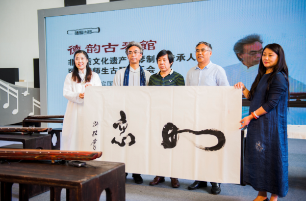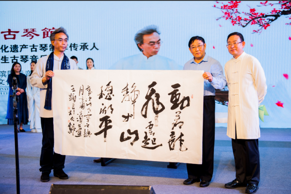 古琴距今已有三千多年历史,被国人推崇为"君子乐器",与棋、书、画同根一脉,自古就是文人雅士生活、艺术交流的形式。音乐会由古琴艺术家张金桥先生演奏的《良宵吟》开始,≪游子吟≫ 《平沙落雁》《卧龙吟》《潇湘水云》《广陵散》等曲,原计划一个小时的演出,持续了一个半小时。张金桥先生演奏的琴曲,时而悠扬婉转,空灵柔美,直击人心,时而如大江奔流,成大气磅礴之势,自由奔放的情感一泻千里,刚柔相济,琴人合一的意境,感染着每一位观众。几位书画艺术家的情愫也沉寝在古琴的意境里,激发了创作灵感,琴书相合,笔式跌宕遒力,直抒胸意,两种同根同源古文化的交相呼应,产生心灵的共鸣,是隔着时空与古人的对话。这种别开生面的“文化盛宴”,深深吸引了在场观众的视觉与听觉,让人耳目一新。使观众充分领略到传统文化的魅力,增强了对传统文化的热爱和民族的自豪感,久久驻足,意犹未尽,不愿离去。