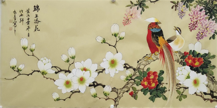 陈弘雨所绘画的题材上以山水、花鸟为主,山水追元四家、清四家,而在绘画花鸟方面遍临吴昌硕、齐白石、李苦禅、潘天寿等名家作品,逐渐形成了她自己特有的风格。而其他题材也均有涉及,工笔、写意风格游刃有余,并且她还是一位书画艺术综合能力比较全面的年轻书画家。