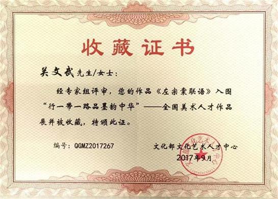 榜上有名,脚下路路通。关文武2011年被中国文联任命为"中华艺术形象大使",2006年辽宁美术出版社出版发行《21世纪中国美术家关文武》画集,美术作品出版社出版发行《21世纪中国美术家关文武》画集,美术作品先后被国内外收藏家及友人收藏,多次在《中国美术教育》、《美术大观》等刊物上发表作品及论著,传略被收入《世界书画名录》。