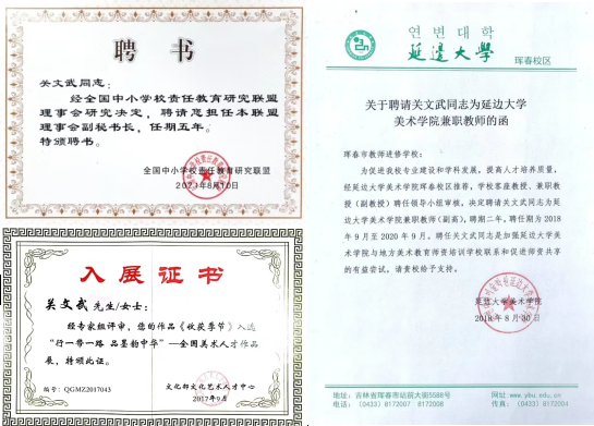 记者了解到,关文武先生1972年生,中共党员,满族正黄旗后裔,现任珲春市教师进修学校美术教研员、吉林省基础教育关文武专家工作室主持人。关文武先生还在延边大学美术学院就读过美术专业硕士研究生、日本广岛市立大学大学院艺术学研究科博士课程留学生,担任延边大学科座教授、中国国际教育科学研究院客座教授、中国少数民族美术促进会会员、中国收藏拍卖网高级画师、中国教育学会"十二五"科研规划重点美术课题主持人、中国美术家协会吉林省分会会员、中国珲春美术教育协会主席、全国美术骨干教师、省优秀美术教研员。