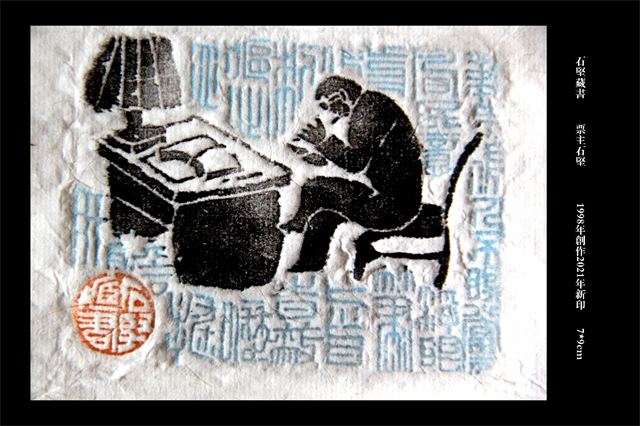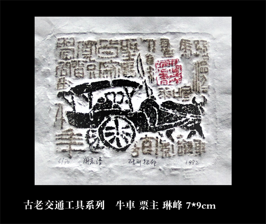 1990年开始主攻砖刻拓印版画,坚持三十多年,创作了大量砖刻拓印版画作品,砖刻拓印版画用篆刻方法刻制,讲究冲、切刀法,用宣纸拓印,刀痕、砖痕都能清晰体现,可以一版多色,常用书法文字做背景和衬托,集绘画、书法、篆刻于一体,手拓时灌注了情感,别有一番韵味,具有浓郁的民族特色。