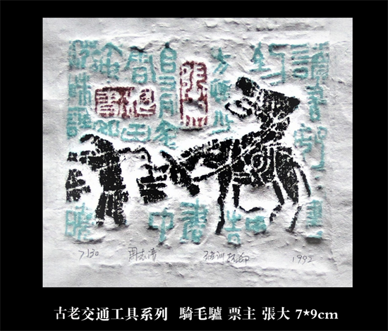 画家周志清先生从传统中走过来,在美术学院受到过许多老艺术家的教导与熏陶。他很敬畏传统,加之他爱读书,好思考,滋养了很多修为,多年的历练和眼界,加上书法、篆刻、绘画等一手很好的传统功夫,再从中悟出自己的认识,演化为自家的特色;砖刻拓印版画就成为他自我表现的独到的形式。
