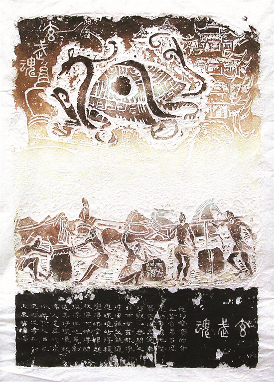 拓印技术是我国古代发明之一,是中华民族传统文化的精华,距今已有两千多年的历史。精美的汉代画像砖、画像石以及大量的古代书法碑刻都是通过拓印流传至今的,拓印这种艺术形式堪称中华传统文化的明珠瑰宝。宋元以降,乃至明清大量的画像石、画像砖以及青铜器、甲骨文等等的拓片出现,这便是最早的拓印版画,它启发了许多艺术家开始探索以这种形式进行创作,这也说明了拓片在艺术上有很高的价值,反映了当时社会的文化审美取向。
