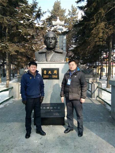 参加纪念活动的有分社张平社长、马格青副社长、张瑞博副社长、何海鹰副主编、侯昕副主编和刘伟主任。张平社长代表东北抗联后代向将军敬献了花篮,马格青和侯昕代表新闻社向李兆麟将军敬献了花篮。