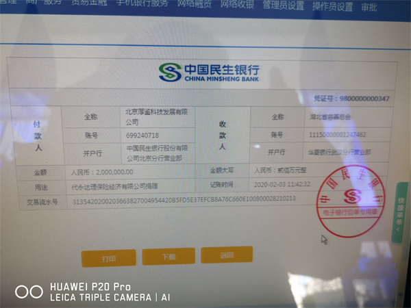 天灾无情,人间有爱。2020年2月3日,为响应党中央、国务院的统一部署,由永达理保险经纪有限公司股东北京厚鉴科技发展有限公司代为向湖北省慈善总会捐赠人民币200万元,用于一线医务人员和工作者抗击“新型冠状病毒感染肺炎”疫情。
