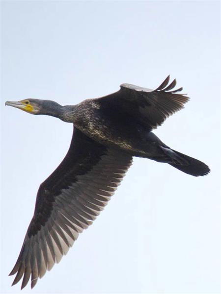 鸬鹚体羽黑色,肩羽和大覆羽暗棕色,羽边黑色,而呈鳞片状,体长为1.1~1.2米,嘴强而长,锥状,先端具锐钩,适于啄鱼,下喉有小囊,喉部具大白点。其善于潜水,栖息于河川和湖沼中,是捕鱼的高手。