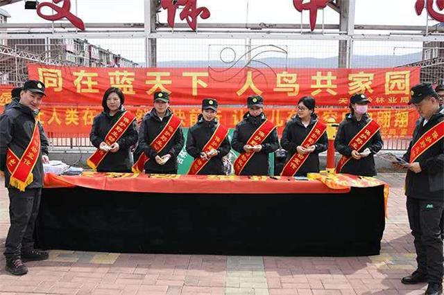“保护鸟类为环境增姿添彩”、“地球上不能只剩人类”。保护爱护鸟类的标语在天桥岭林区主要路口,主要街道随处可见,保护爱护鸟类的声音响彻天林大地。