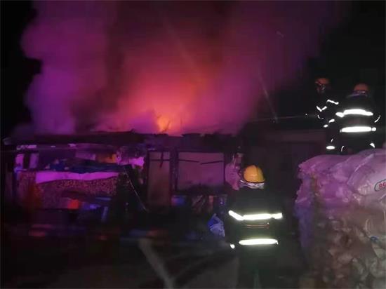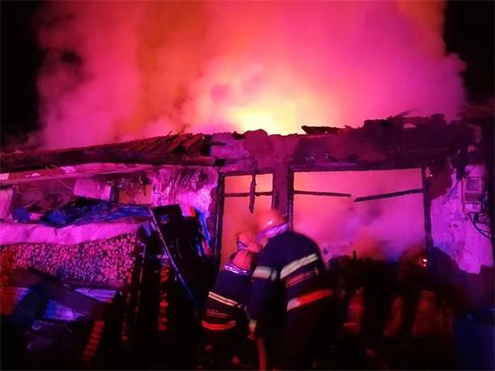 通过现场勘查,着火地点是一农户牛棚,牛棚内存有草料,如不能及时控制火势,很容易引发严重后果。消防队员立即对现场进行警戒,并出2支水枪掩护破拆人员从房顶强行破拆,另外2支水枪在房顶直击大火,防止火势向左右毗邻蔓延。一边是熊熊燃烧的大火,一边是寒风刺骨的天气。水枪喷出的水雾,有的被风吹到消防队员身上瞬间结冰。经过2个小时的奋力扑救,在汪清县消防大队的共同努力下,火势被成功扑灭。消防队员这时才发现灭火作战服已结冰冻成一体,甚至连手套都冻得无法弯曲。