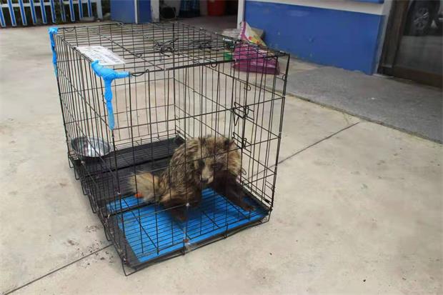 民警和动保人员在确保安全的前提下,对貉的身体进行全面检查,发现腿部受伤,立即将其暂时运回派出所进行救治。因该动物腿部受伤无法放归,民警和动保人员对其受伤部位进行消炎处置,并对其进行喂养,貉的体力逐渐恢复,伤情有了好转,具备了放生条件,11日下午,派出所民警与动保部门工作人员一同将其放归森林。