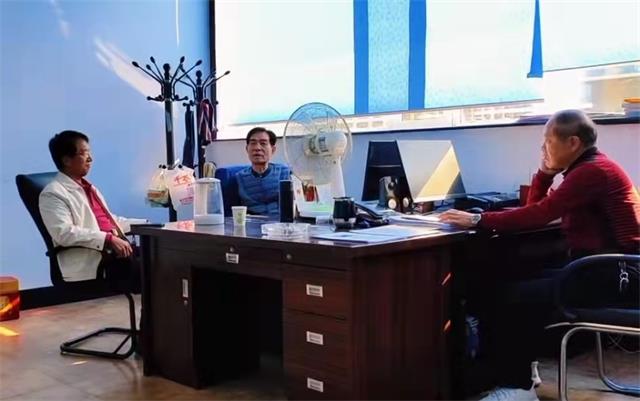 汪清县原副县长韩东昊(中)、原组织部副部长(右)在办公室接受凤凰新闻社社长、记者田长友(左)采访