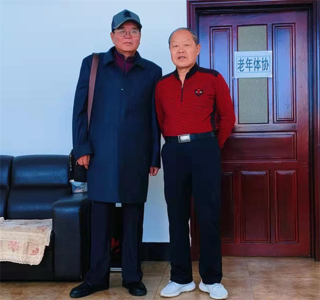 体育协会执行主席兼秘书长李圣鸠(右)同记者张铁(左)合影