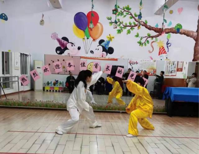 一到淮南,林会长一行就在中国体育非遗永京拳代表性传承人葛永志先生的陪同下,首站来到某社区幼儿园观看孩子们的永京拳表演,经过一段时间的学习和排练,孩子们认真背诵了《中国永京拳弟子规》、《中国永京拳道德经》等,林会长在观看了孩子们的永京拳表演后非常认可葛永志先生提出的通过永京拳习练实现强中强国从幼儿园抓起的想法。