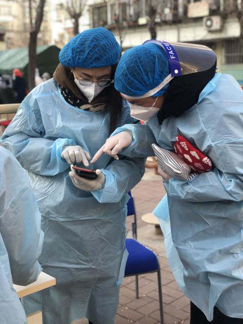 1月8日,天津市王顶堤园荫里社区工作人员连续奋战,昼夜不息。尤其是封控区、管控区、防范区的社区人员,更像铁人一样坚守自己的岗位,忘记了身负一线的风险,以实际行动诠释了“为民”担当。还有那些穿着红马甲的人,有的是在职党员、有的是普通群众,但在社区里他们都叫“志愿者”,默默无闻维持秩序、辅助登记、引导检测队伍,或者扯开嗓子挨家挨户唤居民检测……他们忙碌穿梭的身影像火焰一样,融入一股正能量的洪流中,温暖了这个冬天。