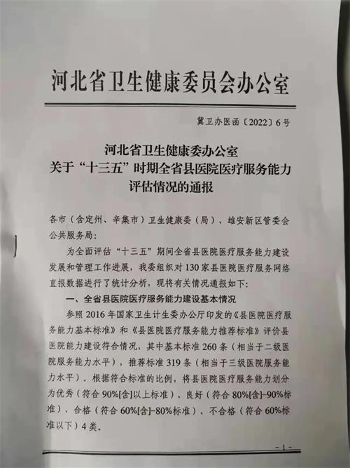 井陉县医院在综合排名中名列全省第二