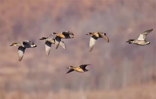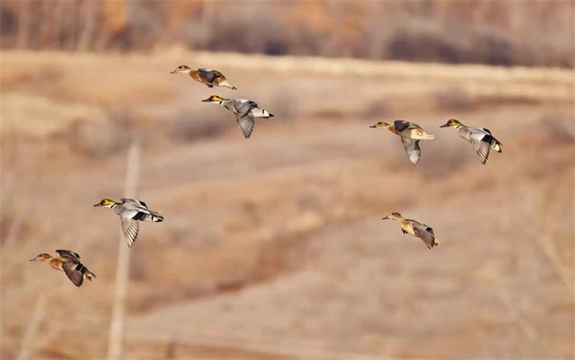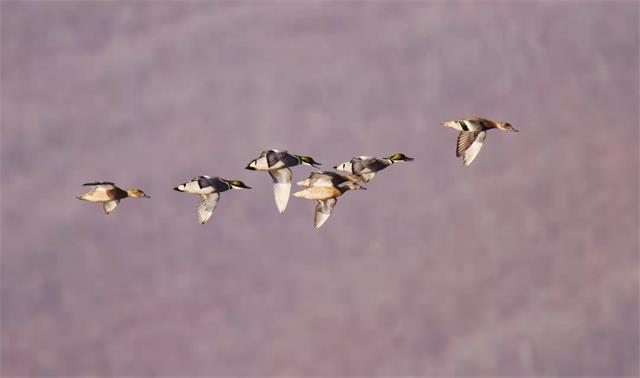 头顶艳丽羽毛,身穿黑白衣裳,时而在水中嬉戏觅食,时而翱翔天空。这是一小群迁徙而来的“稀客”罗纹鸭。来到吉林天桥岭嘎呀河做客。原以为你是青铜,没想到你是王者,该物种己被列入国家林业局《国家保护的有益的或有重要经济、科学研究价值的陆生野生动物名录》和《世界自然保护联盟濒危物种红色名录》中,被列为近危鸟类。