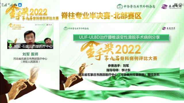 比赛中,刘军主任汇报的病例是《ULIF-ULBD治疗腰椎退变性滑脱手术病例分享》,凭借扎实的专业知识和娴熟的演讲技巧,在全国骨科同道面前展示出医院骨科的专业技术水平,获得专家的广泛好评与认可,最终获得第六名的佳绩。
