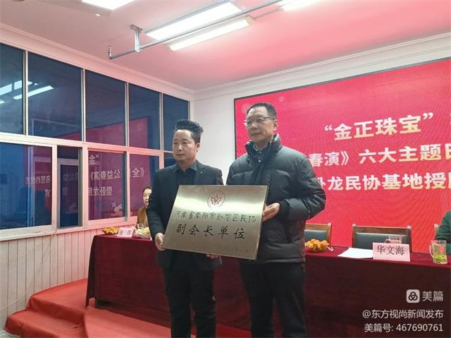 2023年1月16日下午,冬季如春,暖阳高照,我们应河南省南阳市民协领导邀请参加了“兔年潮玩味 &金正珠宝杯全民公益春演六大主题日”活动 ,暨南阳市卧龙民协基地授牌仪式在南阳市金正珠宝城六楼签约授牌。