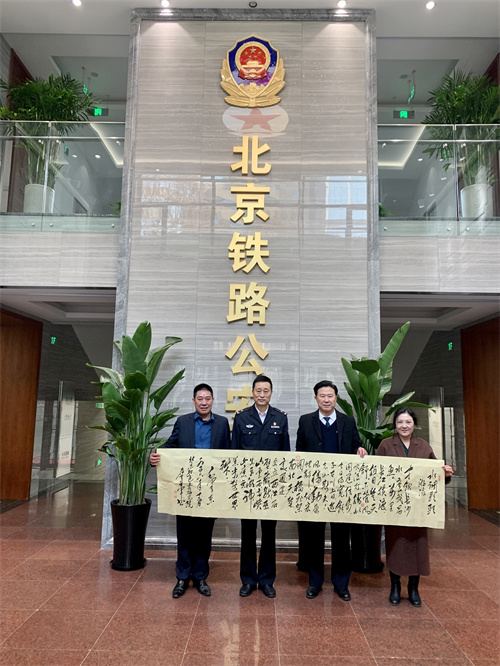 从事公安政工、纪检工作三十余年的高级警官詹亚军(右二)老师也为首都铁警奉献了墨宝。