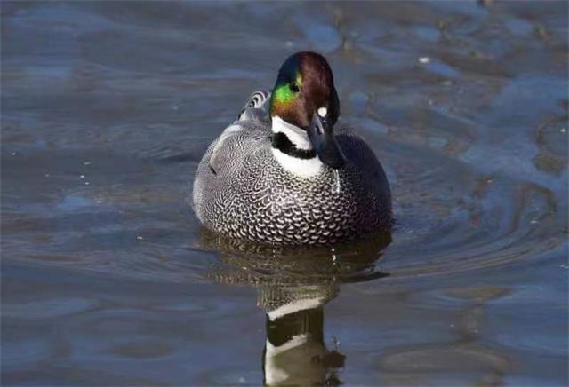 在现场,民警发现池塘里有一群野鸭和家鹅混在一起游弋、觅食、嬉戏。其中有8只野鸭与众不同,在水中欢快地游动,扁长的嘴巴时而在水中觅食,时而梳理着自己的羽毛,悠然自得,绿冠发型超亮眼。民警用镜头记录下这一精彩瞬间。经动保专家鉴定,这是一群高颜值近危物种罗纹鸭。