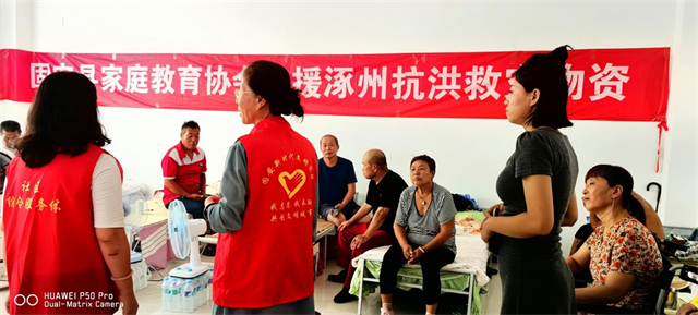 ——固安县家庭教育协会携大湖志愿服务队慰问灾区民众