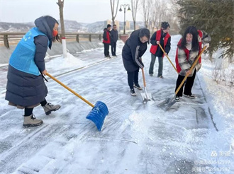 此次扫雪行动, 有效解决了居民出行不便的问题, 同时发扬了“奉献、友爱、互助、进步”的志愿服务精神, 为辖区居民创造出一个安全的出行环境, 用实际行动诠释为人民服务的初心。