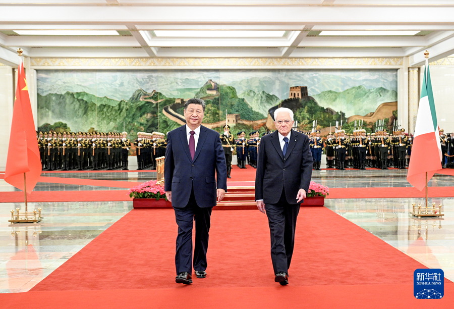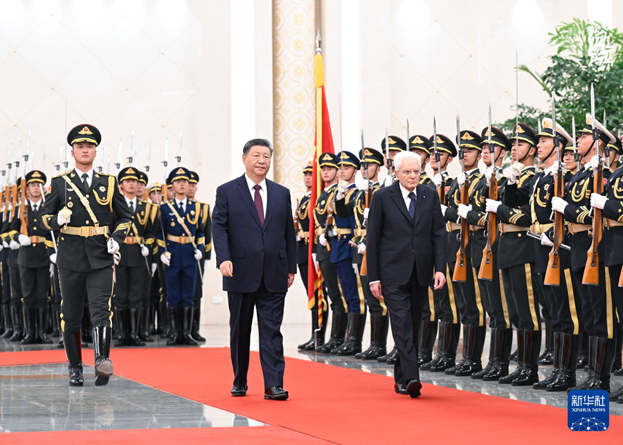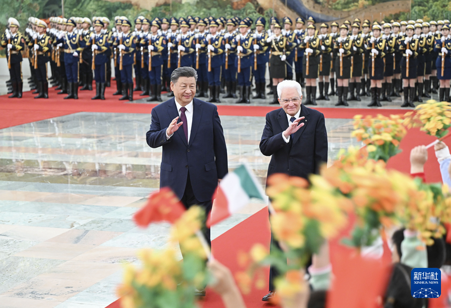 11月8日下午,国家主席习近平在北京人民大会堂同来华进行国事访问的意大利总统马塔雷拉举行会谈。这是习近平在人民大会堂北大厅为马塔雷拉举行欢迎仪式。新华社记者 申宏 摄