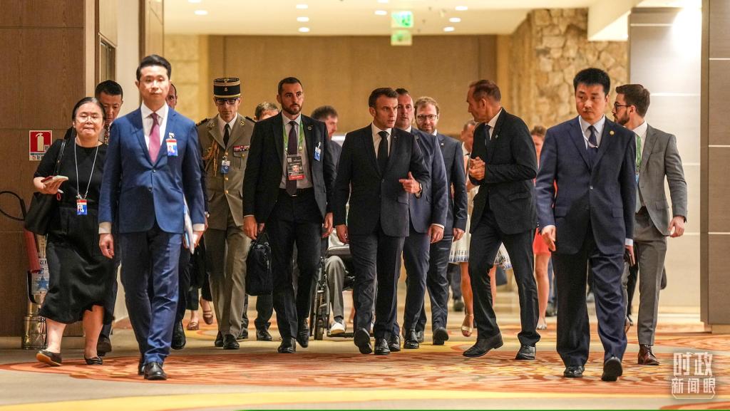 法国总统马克龙前往会场。(总台记者李晋拍摄)
