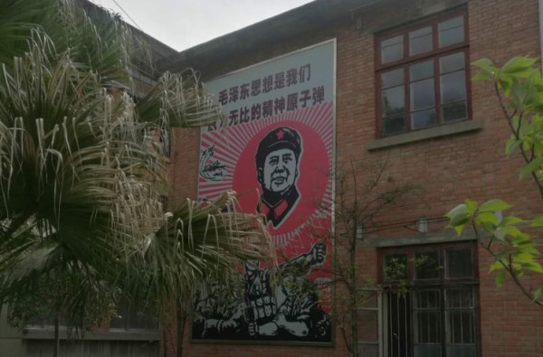 绵阳市两弹一星干部学院,大楼墙上宣传画“中国人民不是好惹的!”