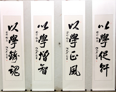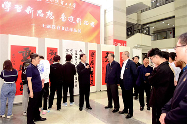 书法展由张成生倾情呈现,是集思想性、教育性、艺术性于一体的精彩展览。此次展览为期7天,参展作品共计130余件。以独特的艺术形式开展主题教育理论学习,是学习形式更加生动的一次尝试,也是学校师生推动主题教育走深走实的另一种实践拓展。观展中,学生们既提高了艺术素养,又领会了理论思想和书法艺术相结合的哲思情理,更激发了他们的民族自豪感、培养了他们的爱国主义思想情感。
