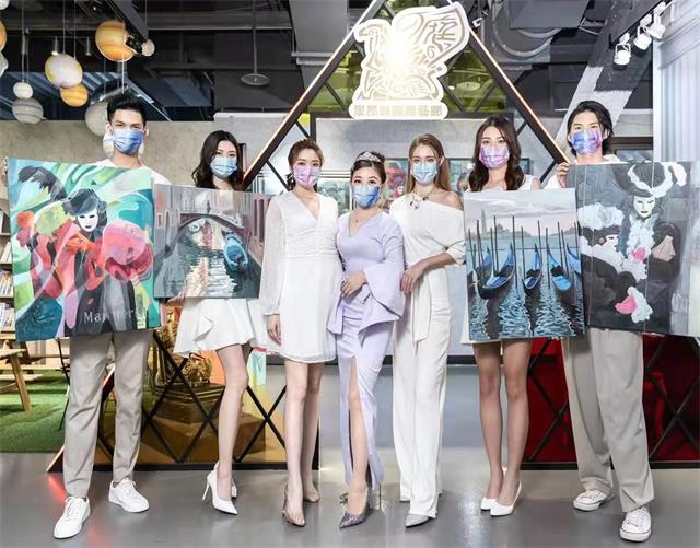 里昂庭国际控股集团创办人黄韵庭、伊林艺人成语荞、安妮及四位名模现场展示威尼斯画作