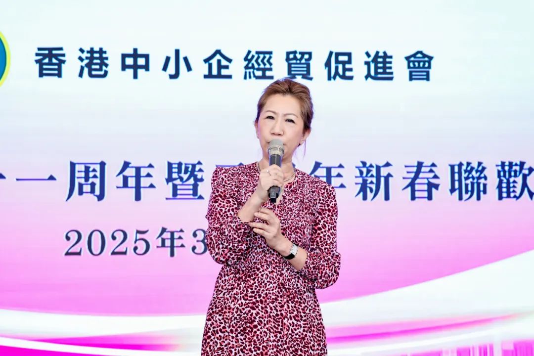 香港中小企經貿促進會會長黃達勝先生為本次活動致歡迎辭時向撥冗出席今晚活動的各位政商領導、嘉賓表示最熱烈的歡迎和最衷心的感謝。回首過去21年的發展歷程,商會從成立之初的寥寥數人,懷揣著助力香港中小企業發展、促進經貿交流合作的夢想,逐步發展成為如今擁有超過700家會員、橫跨70多個行業的代表性組織。這一路上,見證了香港中小企業的成長與繁榮。展望未來,隨著全球經濟格局的調整,香港中小企業面臨著新的發展機遇和挑戰。我們將繼續發揮橋樑紐帶作用,加強與政府部門、行業協會的溝通協作,為會員企業爭取更多政策支持和發展資源,共同應對挑戰,把握機遇。盡管現時國際環境復雜,媒體們給與香港好多負評,但總括來說香港政府通過努力,令地價降低,通漲受控。國內各大企業也有顯著的努力成果,例如 : 哪吒動畫,DeepSeek,這些都是帶給香港良好機遇,我們大家共勉!