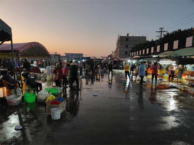 凌晨五点左右,大大小小的渔船载着满舱的海鲜陆续归港。虽然此时天还黑着,但是企沙渔港已经热闹非凡,归港后的渔民们第一时间将收获到的海产品进行分拣包装,随后将这些海产品运往码头上的交易区。天刚蒙蒙亮的时候,交易区已经人声鼎沸,白色的箱子装满着刚下分拣好的新鲜海鲜,来批发的商贩们围着海鲜跟渔民激情地讨价还价着,场面十分热闹。